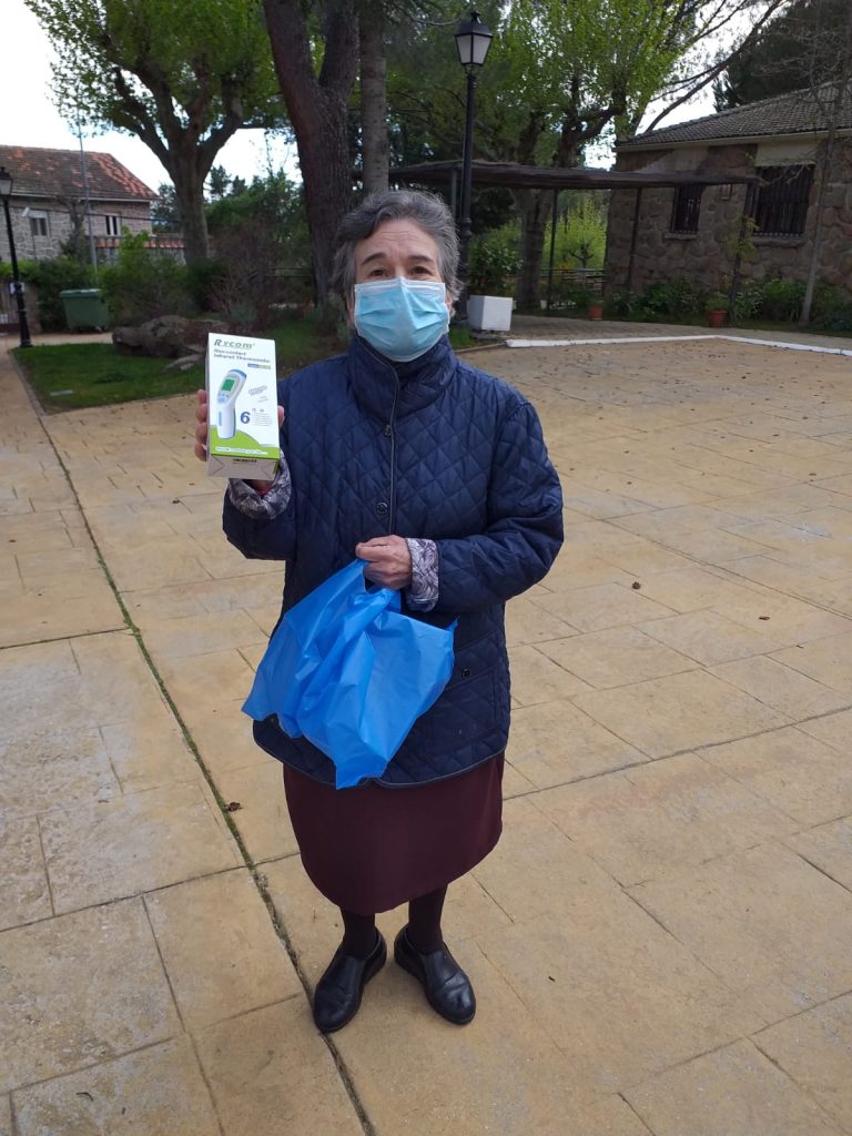 La entrega de hoy de Tine en la residencia Laguna, les hemos hecho llegar 5 tensiometros y 100 mascarillas.